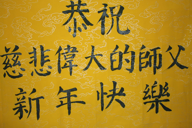師父新年好!洪恩浩蕩正蒼穹,芸芸眾生獲新生。緣結願了修正法,馬到功成同師行。