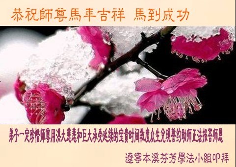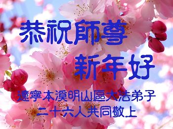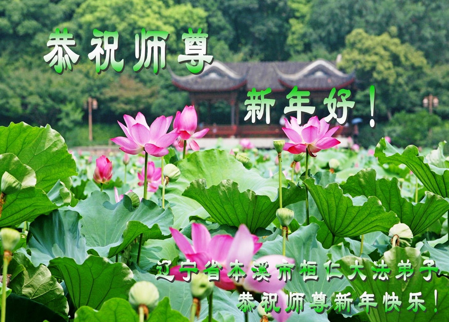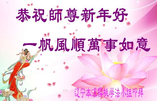 懷著無比崇敬、無限感恩,拜賀師尊新年好!本溪大法弟子一定聽師父的話,做好「三件事」,履行大法弟子的責任與誓約,修好自己,多救眾生,讓師尊少一分辛苦,多一分欣慰。甲午年來臨之際,跪拜師尊,並祝師尊萬事如意!