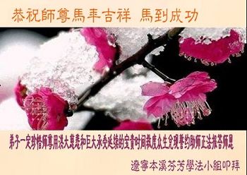 我們只有在今後有限的時間中更加精進,多救眾生,讓師尊欣慰。在此我們本溪市桓仁縣全體大法弟子恭祝師尊新年快樂!