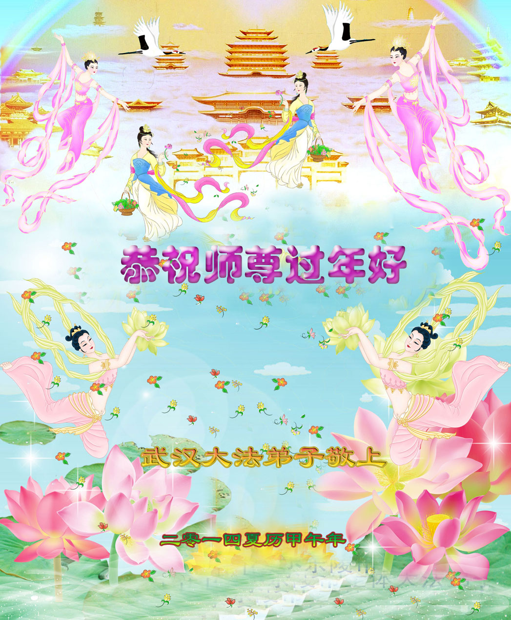 弟子們思念偉大慈悲的師父,恭祝師父新年快樂!傾盡所有語言,也難表感謝師父的救度之恩!我們會牢記師父的教誨:修好自己,做好三件事,不忘我們的責任和使命。講真相,救度眾生,做到修煉如初,圓滿跟隨師父回家。