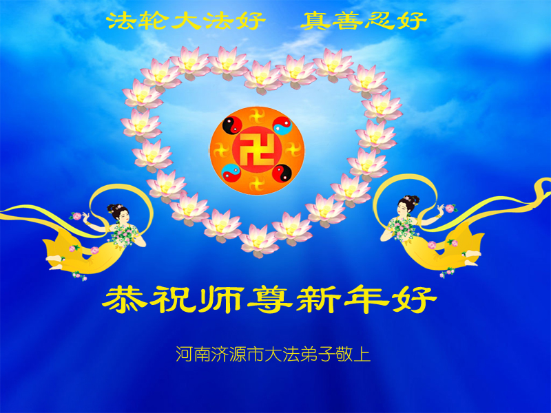 師父,您辛苦了!請師父放心,新的一年裏,我將和同修們一起繼續做好三件事,學好法、講真相、救眾生,無愧於大法弟子的神聖稱號!