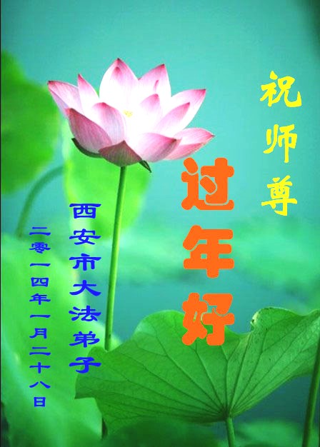 甲午年新春之際,我們一家萬分感激大法師尊的苦心救度,並深深體會到了師尊為我們、為無量眾生的無私付出,以及給予我們、給予眾生的一切,沒有語言能表達我們的感恩之心,為此,特向師尊道一聲:過年好,給您拜年!