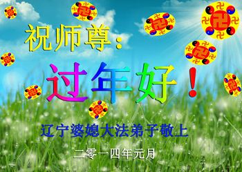 辭舊迎新,正法又一年,在二零一四年除夕新年到來之際,撫順全體大法弟子向慈悲偉大的師尊拜年!並道一聲:師父您辛苦了!撫順的大法弟子無比想念恩師!盼望師尊早日回來與我們團聚。我們深感師恩浩蕩!