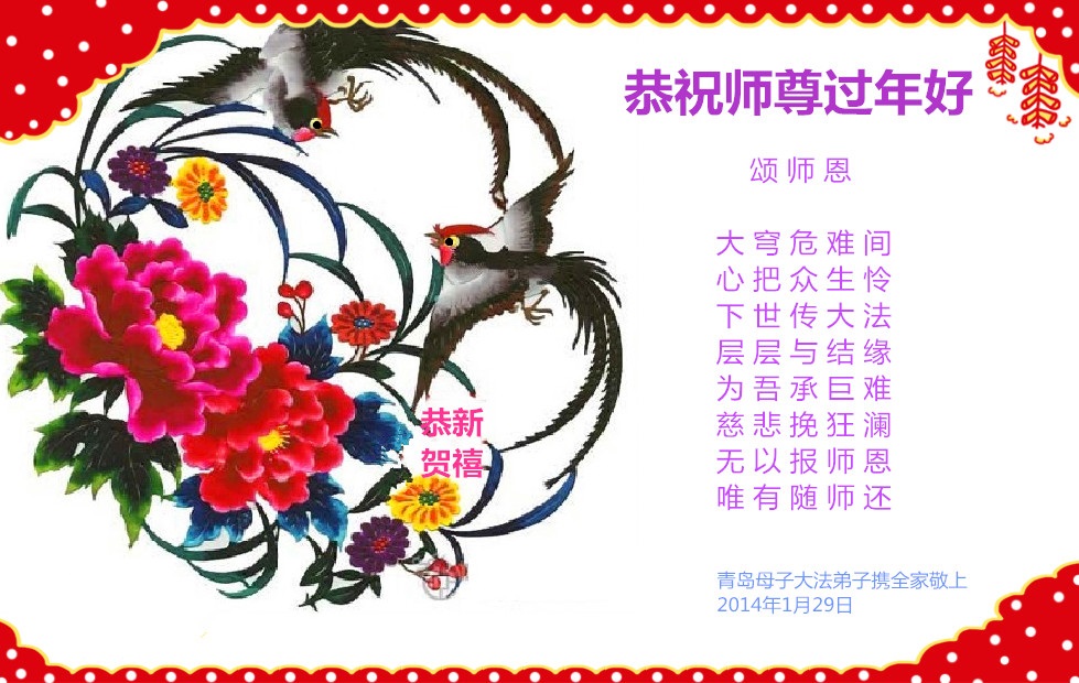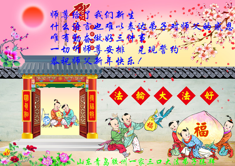 青島市大法弟子恭祝師尊過年好!師尊您辛苦了!在新的一年裏,弟子應該更加精進放下自我,圓容整體,無條件做好三件事。