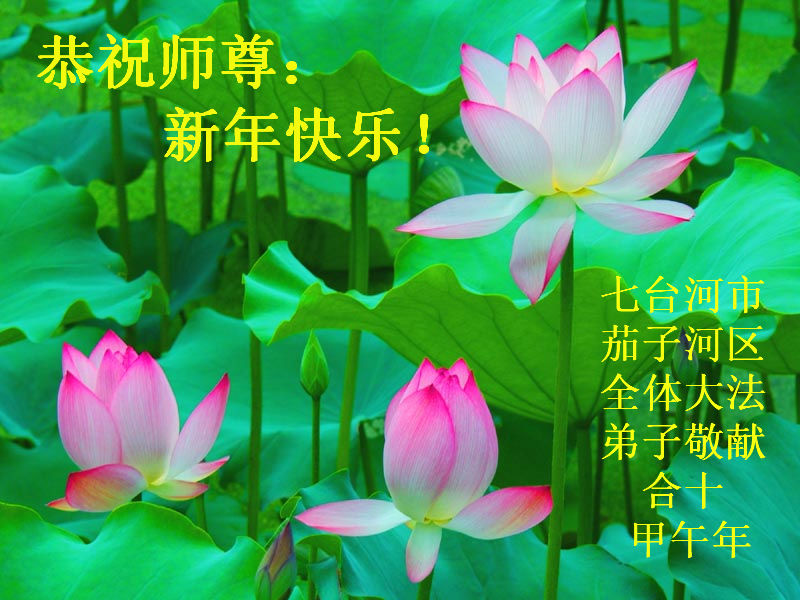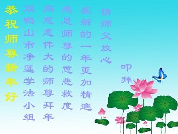 新年快到了,牡丹江市學法小組大法弟子祝:師父新年快樂,身體健康,精神愉快!