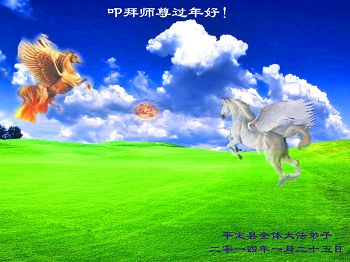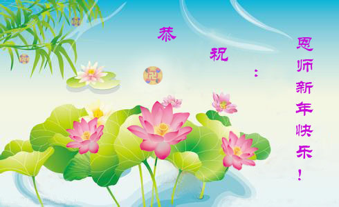 祝偉大慈悲的師尊過年愉快!叩拜,叩拜,再叩拜!借明慧園地向全球同修拜年!合十!