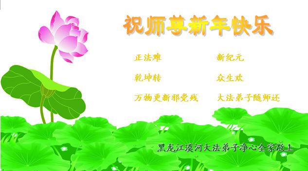 在新的一年裏,我們要精進實修,學好法,發好正念,去掉各種人心,讓師父少費心,我們要用各種方式救度世人,多救人,勇猛精進,早日跟師父相見,回家。