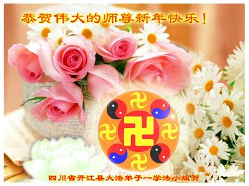 慈悲偉大的師尊您好!當宇宙偏離了法,走向壞滅時,是您發出了「誰願與我下世正法」的呼喚。當我們輪迴在苦海裏時,又是您把我們撈起洗淨,送上回歸的天梯!當我們被紅魔矇騙摧殘時,又是您鼓勵我們:「弟子正念足 師有回天力」!當我們在返本歸真的路上跌倒時,又是您無量的慈悲,一次次把我們扶起,送上一程!今天,在助師正法的又一個新年到來時,我們巴中市大法弟子雙手合十敬祝師尊新年快樂!我們一切屬於大法,一切聽從師尊的安排,其它任何甚麼都動搖不了我們的心,我們正念足,精進隨師回。