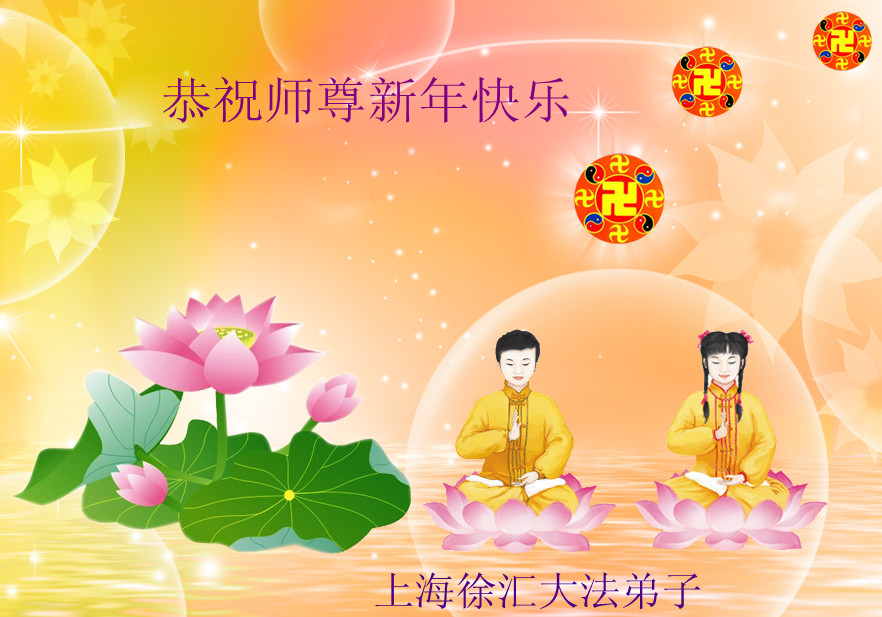 上海浦東大法弟子恭祝慈悲偉大的師尊新年快樂!