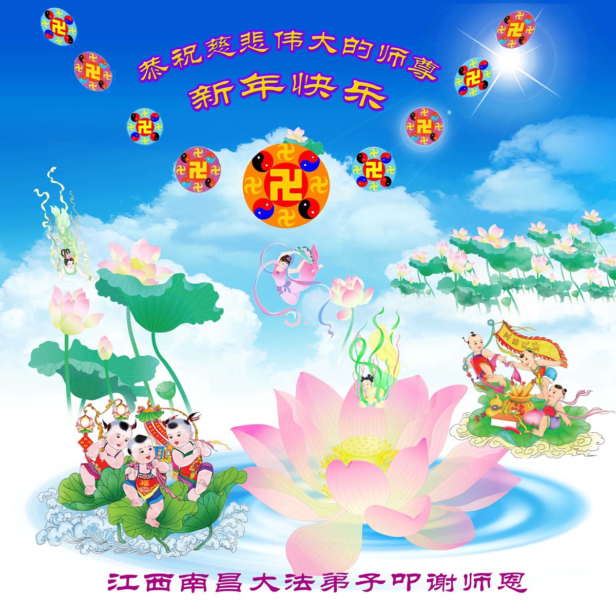 江西南昌市全體大法弟子給師尊拜年,恭祝師尊新年好!