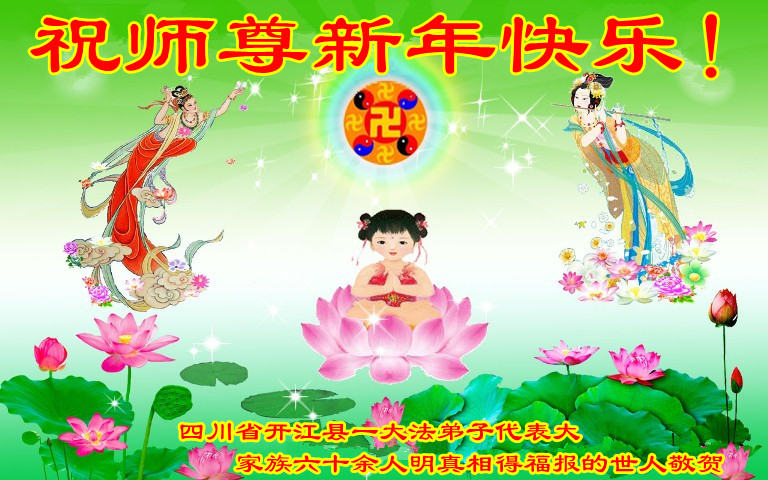 四川省開江縣一大法弟子代表大家族六十餘人明真相得福報的世人祝師尊新年快樂!