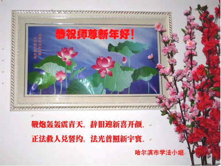黑龍江省哈爾濱道裏區一學法小組大法弟子恭祝師尊新年好!