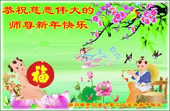 四川省達州市開江縣一家三口大法弟子恭祝慈悲偉大的師尊新年快樂!