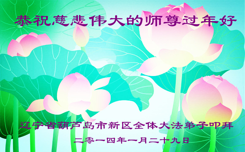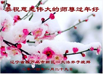 在此新年到來之際,僅代表興城東片學法小組的同修祝願師尊新年快樂,過去的一年裏,有太多的不足和遺憾,我們每個弟子都有希望在新的一年裏做好。不斷的突破自身的不足,緊跟正法進程,最大限度的放下人心的執著。我們想念您,師父!