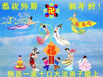 我們一定修好自己,做好三件事,讓師父少操心。師父你辛苦了,有很多話不知怎樣表達,只能誠心的祝您新年快樂。我們沒見過師父,特別盼您早日歸來,和大陸弟子歡聚一堂。