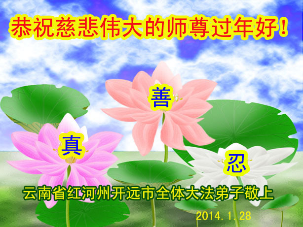 在中國傳統新年即將到來之際,我們恭祝慈悲偉大的師尊節日快樂!是偉大的師尊,讓眾生在重重危機中走到了二零一四年。我們一定謹記師尊教誨,做好三件事,不斷精進,救度眾生!