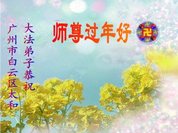 廣州市全體大法弟子恭祝慈悲偉大的師尊新年快樂!感謝師尊一直以來的慈悲救度以及替大法弟子與世人的承受,我們對師尊給予的已經很滿足了,知道師尊對我們的要求很高,我們也一定會正念正行,努力做好三件事。