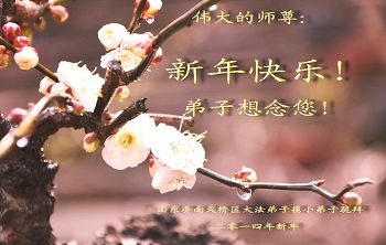 在新的一年裏,我要好好學法,多發正念,做好三件事,請師父放心!我很想念師父,祝師父新年好!
