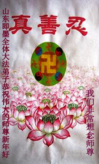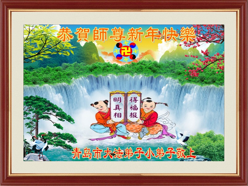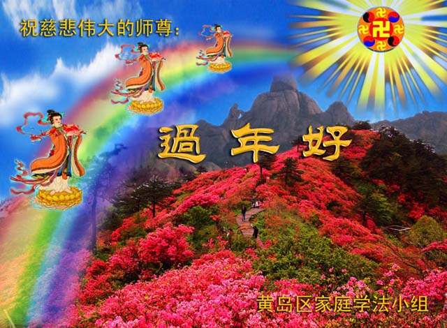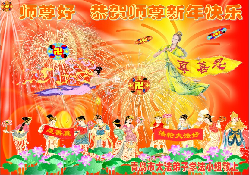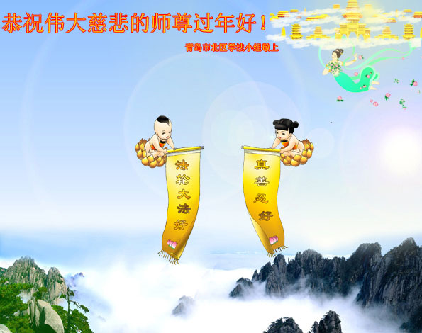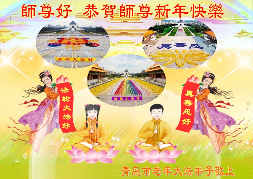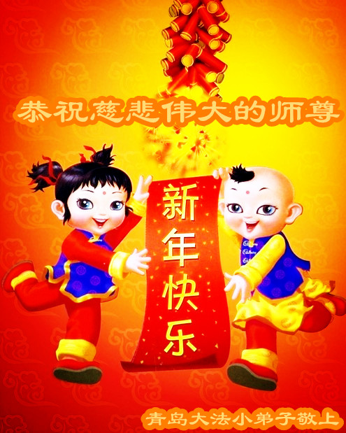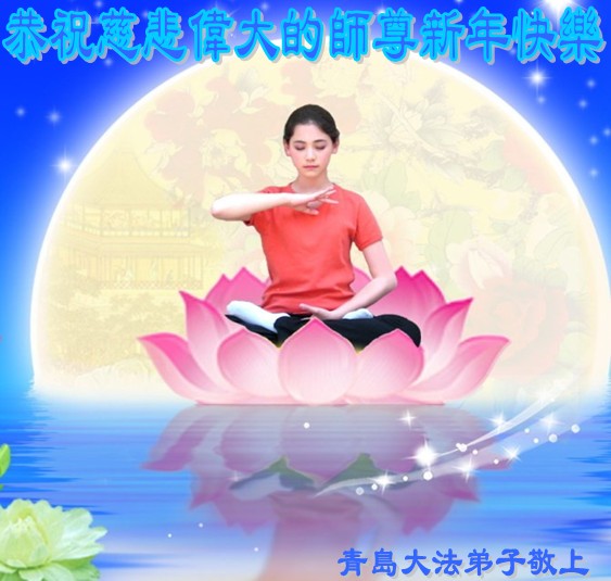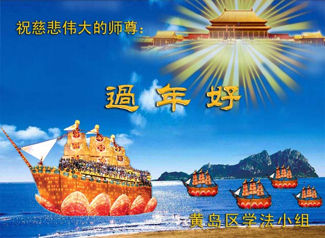 山東省青島大法弟子恭祝慈悲偉大的師尊新年快樂!