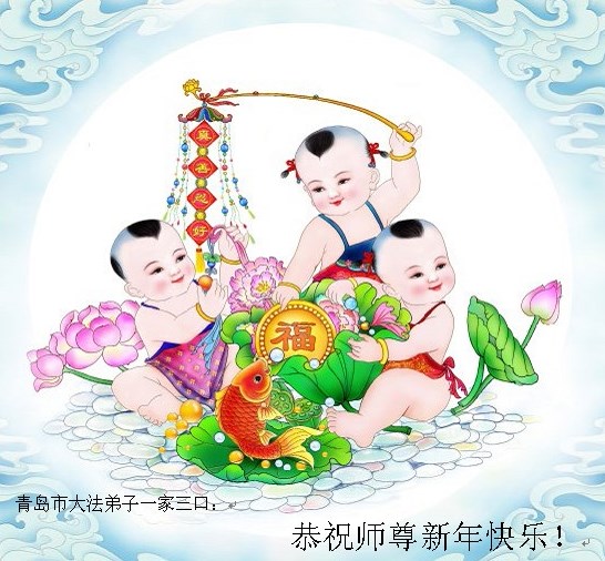 山東青島一家三口大法弟子恭祝師尊新年快樂!