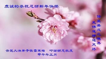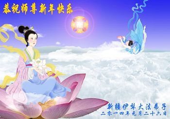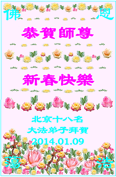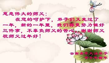 在這闔家團聚的傳統佳節裏,弟子非常想念師尊,感念師尊洪恩,非常有幸能成為師父的弟子!在新的一年裏,弟子一定在做三件事上要有個突破,向內找,多救人,迎接師尊早日回中士。在此也謹代我那不算修煉但非常認同大法的女兒問師父過年好!