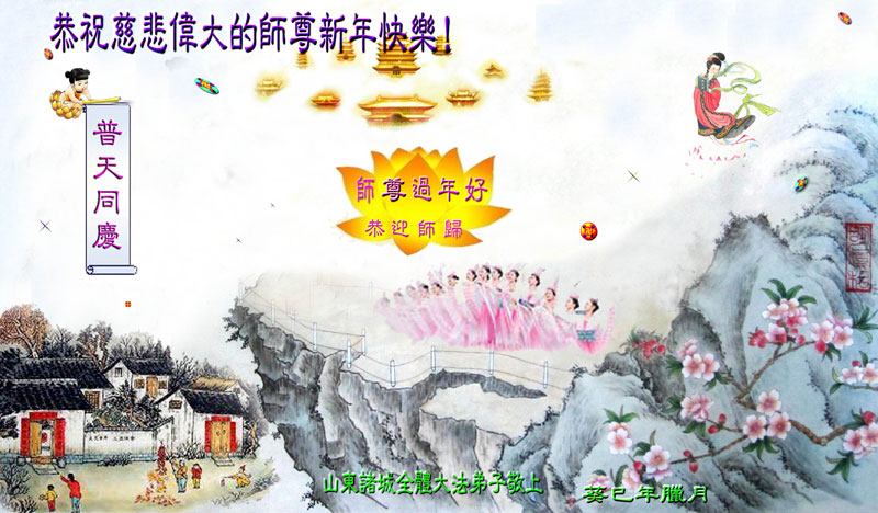 山東省濰坊大法弟子給師父拜年:師父,過年好!