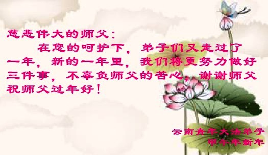 雲南青年大法弟子恭祝慈悲偉大的師父過年好!