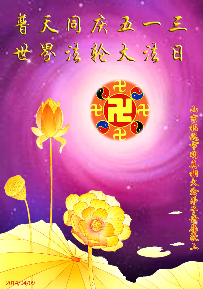 5月13日是普天同慶的時刻,是生命感恩的日子,師恩浩蕩,叩謝慈悲偉大的師父為我們和眾生所承受的一切、精心安排的一切!在最後的這段正法路上,我們要做好大法弟子該做的一切,抓緊一切時機講真相救人,真正的做到正念正行,兌現誓約隨師還。