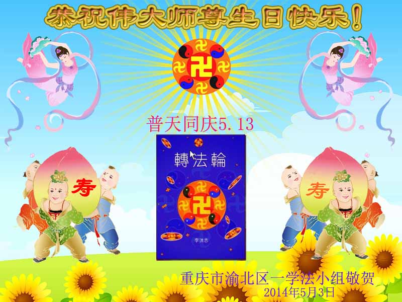 熱烈慶祝五一三世界法輪大法日!法輪大法洪傳二十二週年!重慶永川大法弟子恭祝師父生日快樂!