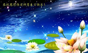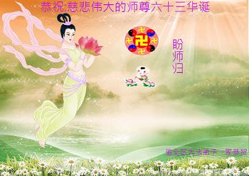 請師尊放心,弟子會好好珍惜師尊用巨大的承受為我們延長來的寶貴時間。我們一定會珍惜每一分、每一秒,紮紮實實做好三件事。每一思、每一念都用大法來衡量,要正念不要人心。時時在師尊的大法中熔煉、洗淨,找回真正的自我,回歸我們真正的家園,再一次恭祝恩師生日快樂!