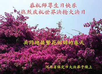 河北省保定市大法弟子恭祝師尊生日快樂!熱烈慶祝世界法輪大法日!