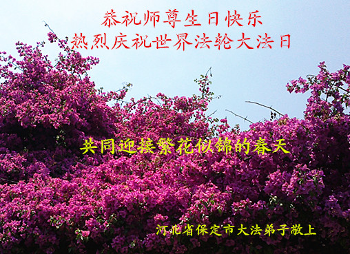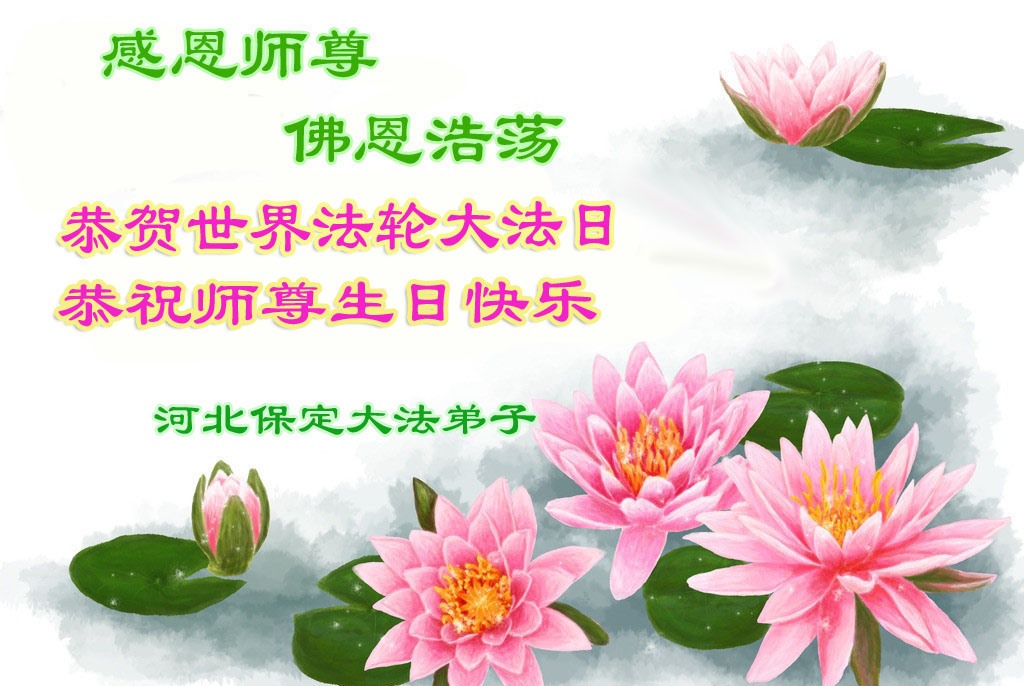 河北保定大法弟子恭賀世界法輪大法日!恭祝師尊生日快樂!