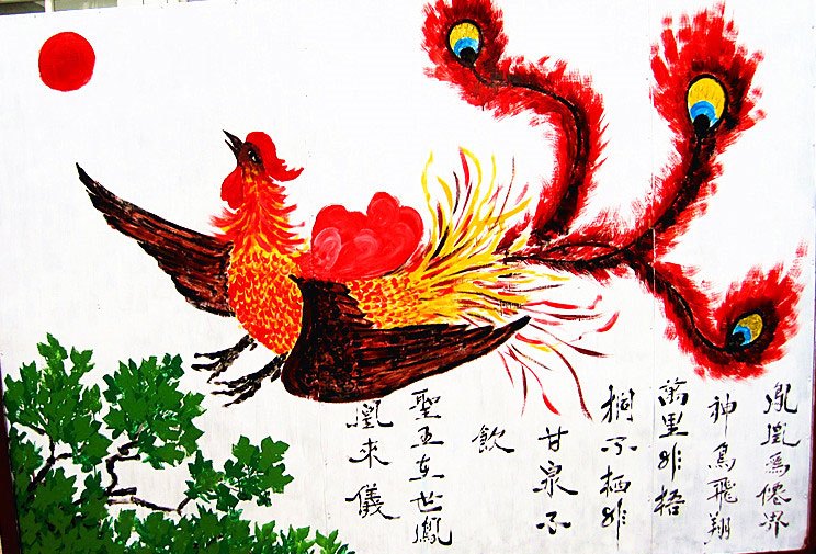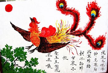 我們全家1996年入道得法,多年來感恩師父的慈悲救度與呵護。今後的路還要走的更好,抓緊做好三件事,請師父放心。獻上弟子畫作一張「丹鳳朝陽」,聊表寸心。