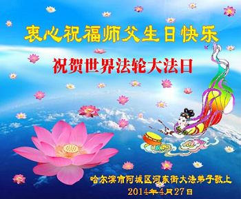 在至高無上的師尊六十三華誕、法輪大法洪傳二十三週年即將到來之際,達連河大法弟子叩拜恩師、衷心祝賀師尊生日快樂!盼望想念的恩師早日回到大陸。