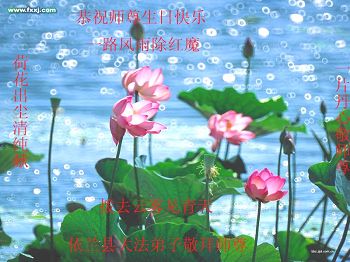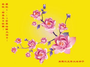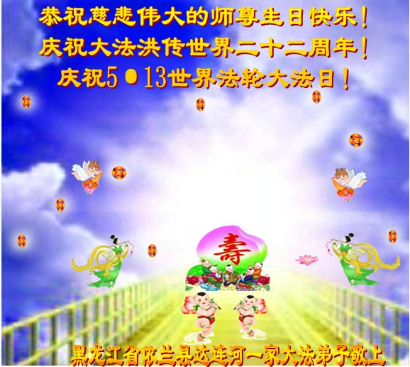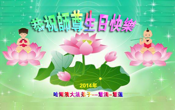 我們一家三口大法弟子在遙遠的東方叩拜偉大慈悲的師尊,恭祝師尊生日快樂。弟子們一定努力做好三件事,修好自己。救度更多的眾生,圓滿隨師還。