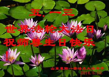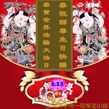 山東濟寧市一花學法小組大法弟子恭祝師尊生日快樂!恭賀世界法輪大法日!