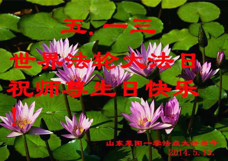 山東省煙台市萊陽市一學法點全體大法弟子恭祝慈悲偉大的師尊生日快樂!敬賀「5.13」世界法輪大法日!