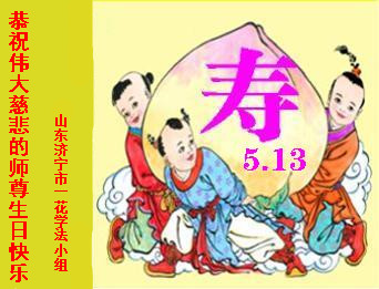 在這舉世歡慶的日子裏,我們叩拜師尊,感恩師尊,向師尊致以崇高的敬意並致以親切的問候,祝師尊生日快樂!師尊您辛苦啦!