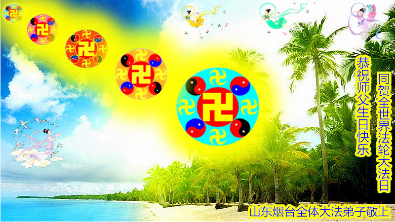 山東煙台全體大法弟子恭祝師父生日快樂!同賀全世界法輪大法日!