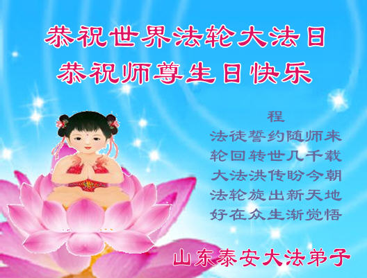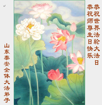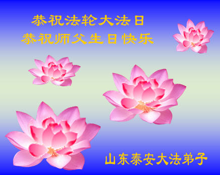 在世界法輪大法日到來之際,我們向慈悲偉大的師尊問好!感謝師尊的慈悲苦度!在今後的日子裏,盡力做好三件事,讓師尊多一份欣慰!弟子跪拜師尊!