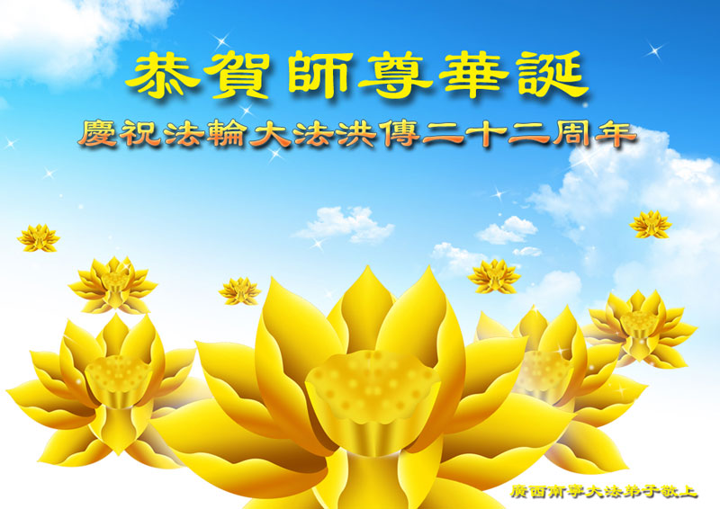廣西博白大法弟子懷著崇高的敬意感謝師尊二十二年來對我們的慈悲苦度。我們一定認認真真做好三件事,決不辜負師尊對我們的慈悲苦度。