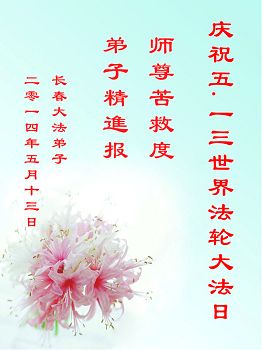 我們迎來了又一個「世界法輪大法日」,眾生在不斷的被救度,世人在覺醒,大法弟子在成熟,這一切的一切都離不開師父的慈悲呵護。師恩浩蕩,無以言表,弟子唯有精進、精進、再精進,努力儘快同化大法,讓師父寬心,穩健的走好最後的路,救度更多的眾生,做好大法弟子應該做的「三件事」,精進以報師恩。