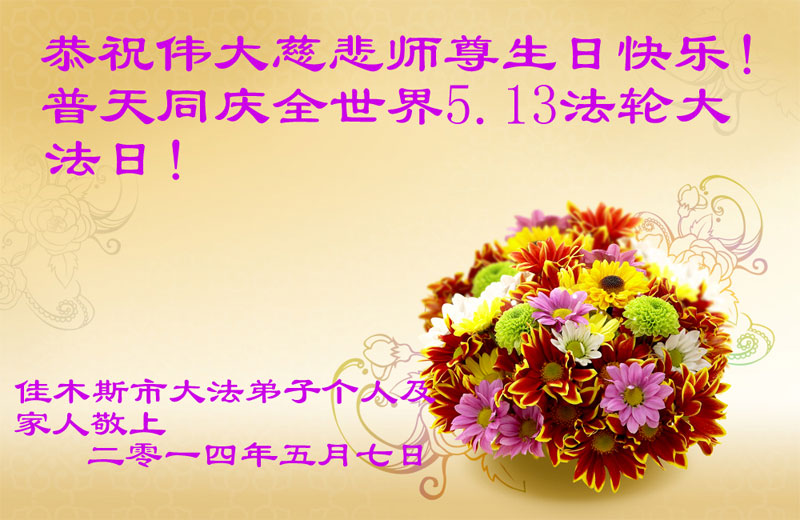 黑龍江省佳木斯一大法修煉者恭賀世界法輪大法日!