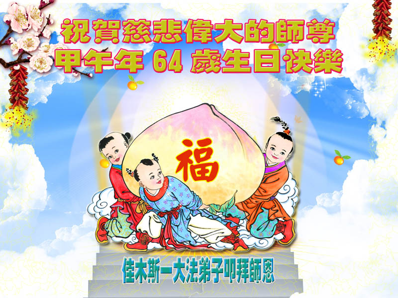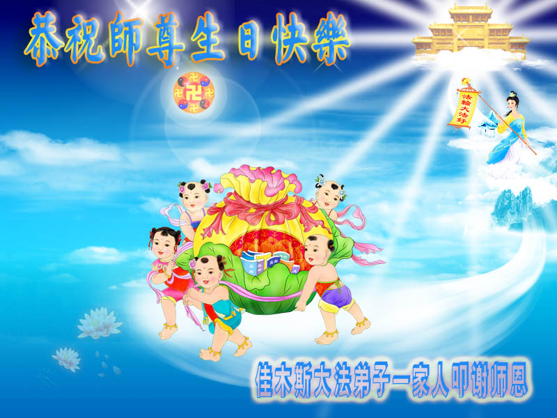 黑龍江省佳木斯大法弟子全家恭祝偉大慈悲的師父生日快樂!