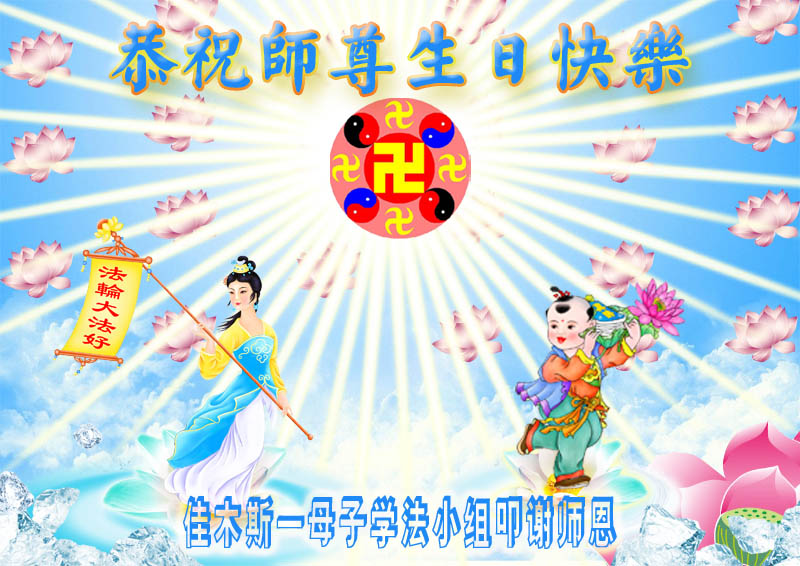 黑龍江省佳木斯一母子學法小組恭祝師尊生日快樂!