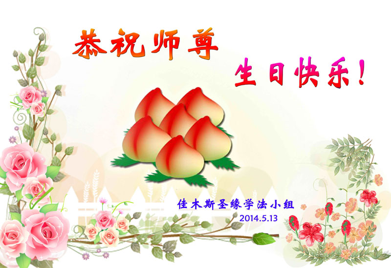 黑龍江省佳木斯結緣學法小組大法弟子恭祝師尊生日快樂!慶祝5.13