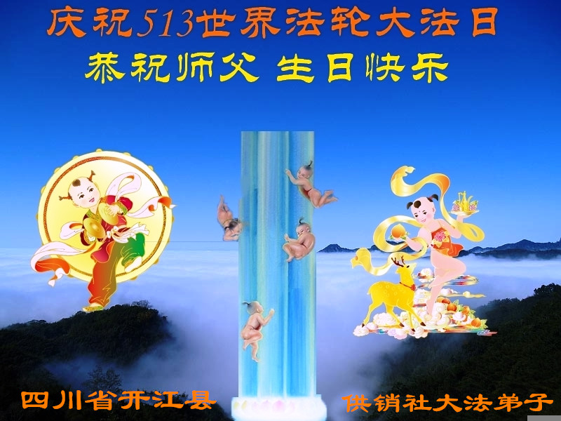 四川省達州市開江縣供銷社夫妻倆大法弟子恭祝慈悲偉大的師尊生日快樂!恭賀世界法輪大法日!