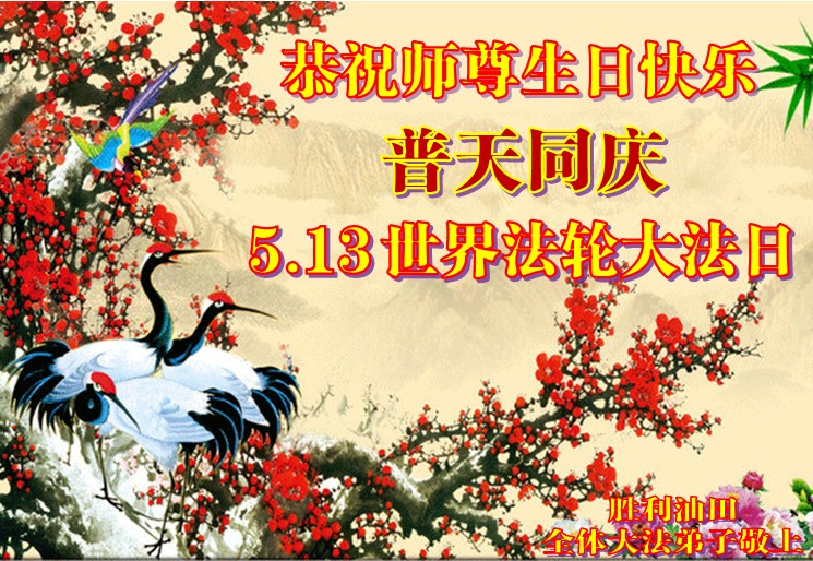 勝利油田全體大法弟子恭祝師尊生日快樂!普天同慶世界法輪大法日!