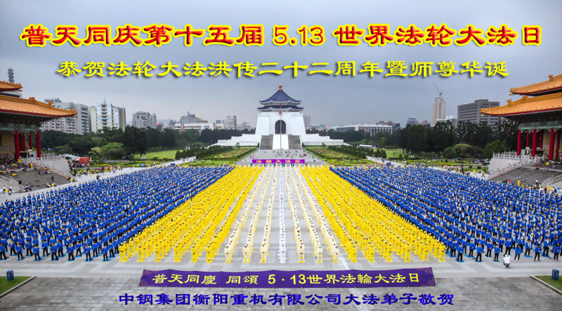 中鋼集團湖南省衡陽重機有限公司大法弟子恭祝慈悲偉大的師尊生日快樂!慶賀法輪大法洪傳二十二週年!普天同慶五一三世界法輪大法日!