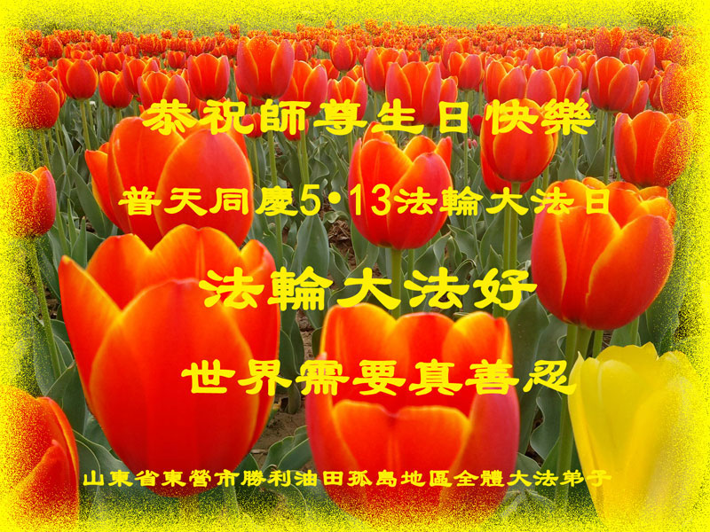 山東省東營市勝利油田孤島地區全體大法弟子恭祝師尊生日快樂!普天同慶法輪大法日!